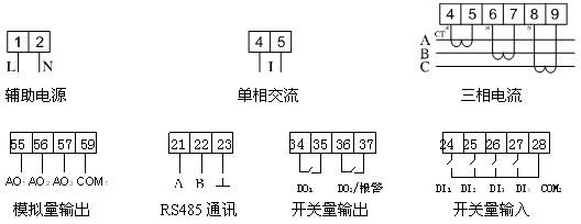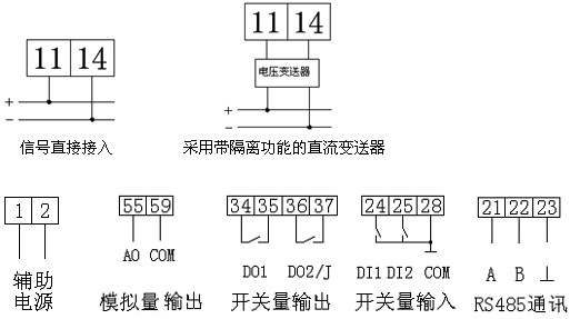 儀表可具有RS-485 通訊接口,采用Modbus-RTU 協(xié)議;可帶模擬量輸出、繼電器報(bào)警輸出、開關(guān)量輸入/輸出。根據(jù)不同要求,通過儀表面板按鍵,對變比、報(bào)警、通訊、開關(guān)量輸出進(jìn)行設(shè)置與控制。