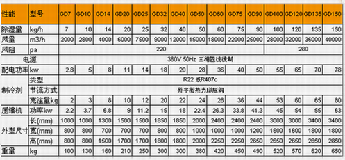 升溫、降溫式管道除濕機參數(shù)表: