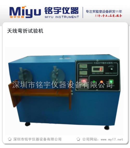 天線彎折搖擺試驗機 銘宇儀器設備有限公司是zui大的天線彎折搖擺試驗機制造商,是由臺灣miyu集團2001年投資成立,公司總部設在具創(chuàng)造力的城市-深圳。