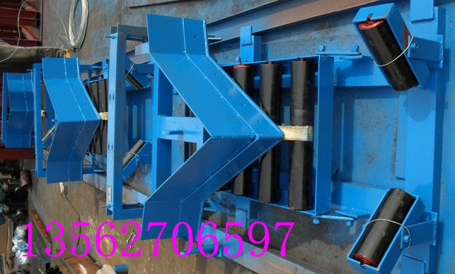 可變槽角卸料器 DYTN電液動卸料器 犁式卸料器DYTN電液動可變槽角卸料器是安裝在膠帶輸送機的中間架上,能將膠帶輸送的物料均勻、連續(xù)卸入料斗或需要場所的皮帶輸料輔機。本卸料器在老式卸料器的基礎上增加了可變槽角棍子,犁刀用耐磨且摩察系數小的高分子聚氨酯材料做成,并改用電液推桿作動力源??朔死鲜叫读掀骼缌喜槐M、刮傷皮帶、電動推桿過載能力差、常燒毀電機、頂彎絲杠、機械易損壞等缺陷。為目前的一種卸料器。主要特點:1、卸料狀態(tài):犁刀下落,中間平托滾組上升,兩端變槽型托輥為平托輥。2、非卸料狀態(tài):犁刀抬起,中間平托滾組下落,兩端托輥變槽型,物料正常通過。3、本產品設計,結構緊湊,操作簡便,通過電機正反轉實現犁頭起落,動作靈敏。4、采用電液推桿作動力源,克服電動推桿易燒毀電機、卡死等缺陷,使卸料器更加完善可靠。