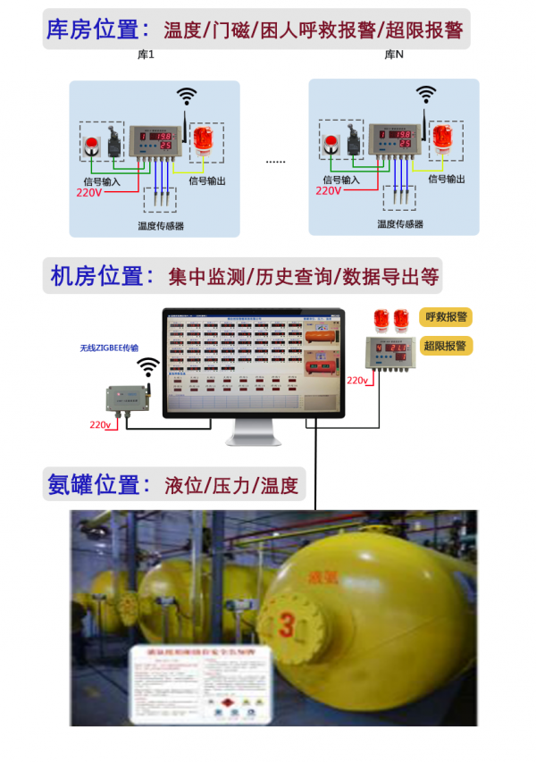 1、庫(kù)門(mén)內(nèi)側(cè)安裝報(bào)警呼叫觸發(fā)開(kāi)關(guān)。當(dāng)觸發(fā)報(bào)警開(kāi)關(guān)后,智能溫度表獲取報(bào)警信號(hào),驅(qū)動(dòng)庫(kù)門(mén)外的聲光報(bào)警器動(dòng)作。同時(shí)轉(zhuǎn)換為數(shù)字信號(hào),通過(guò)RS485總線傳輸至機(jī)房電腦。