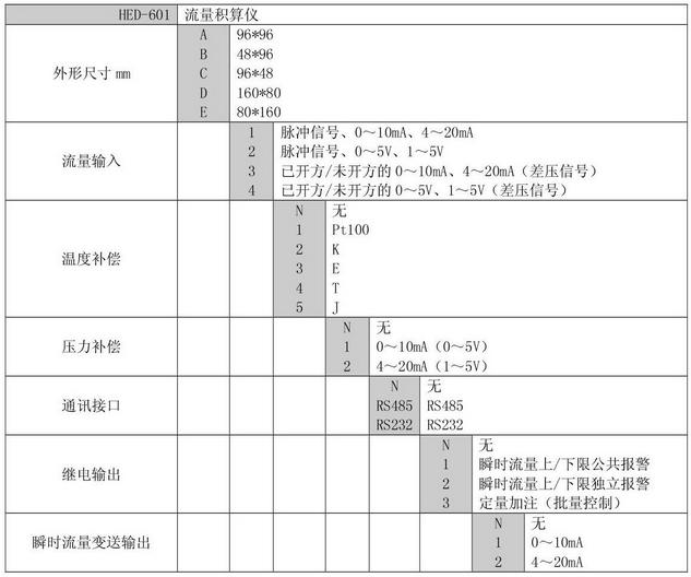 三、DIYE-HED-601流量積算儀型號(hào)說明