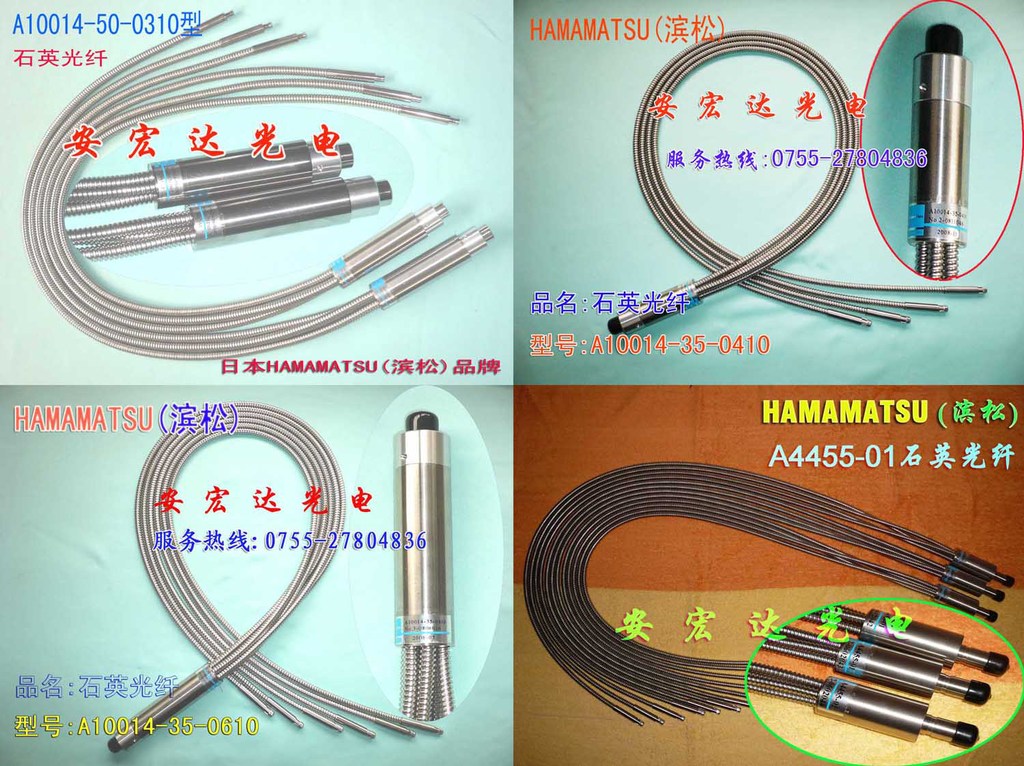 (4)石英光纖的主要型號(hào)有: AF-102NQ-X,AF-103NQ-X,AF-104NQ-X,AF-106NQ-X,SF-102NQ-X,SF-104NQ-X,A4455-01,A4832-01,A4093,A3806,A8771,A2873,A10014-35-0110,A10014-35-0210,A10014-35-0310,A10014-35-0410,A10014-35-0610,A10014-50-0210,A10014-50-0310,A10014-50-0410,A10014-35-0220(特殊定做)等;