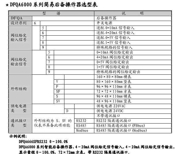 DFQA7000帶工程量顯示和變送輸出的智能后備操作器