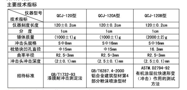RET-QCJ -120 ( 120A 、 120B 因型系列漆膜沖擊器用干以固定質(zhì)量的重錘落于試板上而不引起漆膜破壞的zui大高度 120 厘米表示的漆膜耐沖擊性試驗(yàn)。本儀器沖擊頭沖擊式板后,無(wú)二次回彈現(xiàn)象。