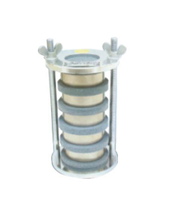 使用方法:將試樣放入環(huán)刀內(nèi)填滿。上下兩面刮平,并貼上濾紙,放在兩塊透水石中間,將五個(根據(jù)需要可少于五個)試樣疊放,用蝶型螺母將透水石、環(huán)刀夾緊。