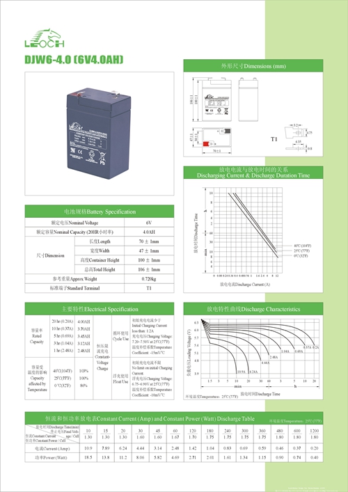 4、使用溫度范圍寬:蓄電池可在-40~+60℃的溫度范圍內(nèi)使用,電池采用獨(dú)特的合金配方和鉛膏配方,在低溫下仍有優(yōu)良的放民性能,在高溫下具有強(qiáng)耐腐蝕性能。