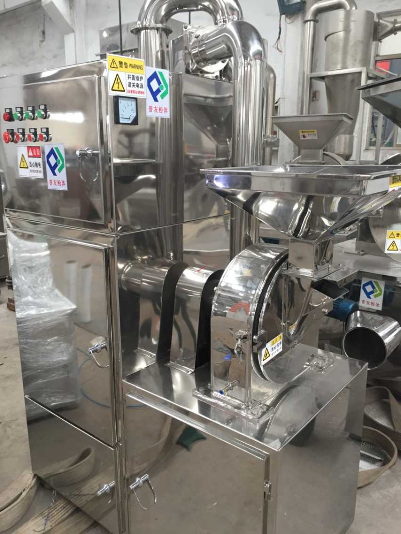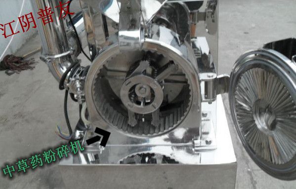 中藥磨碎機用于制藥、食品、化工等行業(yè)。具有風冷、無篩網等多種性能, 它不受物料粘度、軟硬度及纖維等限制, 對任何物料能起到較好的粉碎效果。特別適用于粉碎帶纖維的中藥材、帶一定油性的物料。該粉碎設備