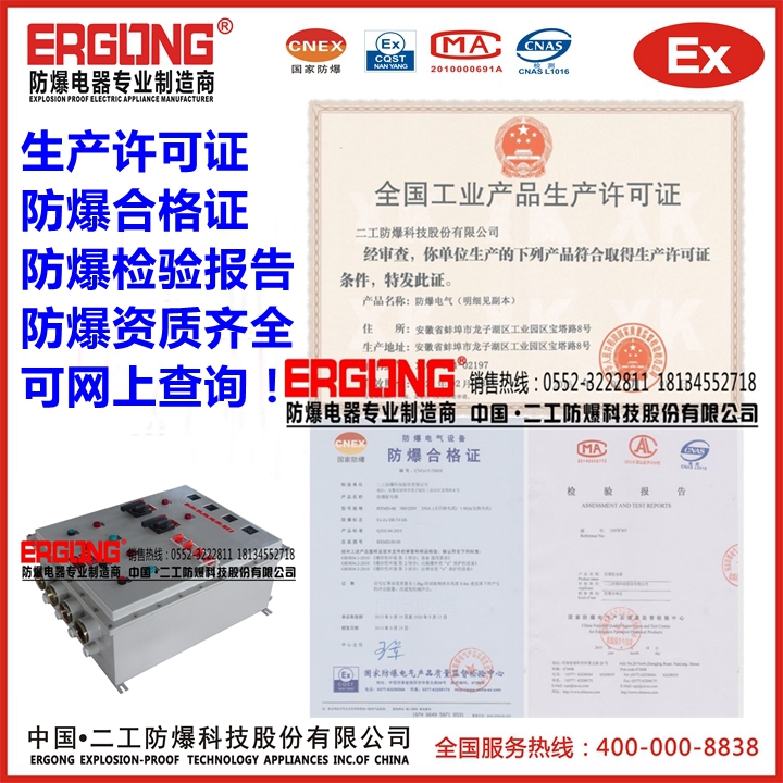 二工防爆科技股份有限公司位于安徽省蚌埠市龍子湖區(qū)工業(yè)園,是一家集開發(fā)、生產(chǎn)、銷售、服務(wù)為一體的防爆電器 公司,專業(yè)生產(chǎn)廠用防爆電器、防爆不銹鋼電器、防爆防腐電器、粉塵防爆電器、防爆燈具、防爆按鈕、管件、儀表和防水防塵防腐電器及燈具、防爆風(fēng)機(jī)、移動照 明等產(chǎn)品。
