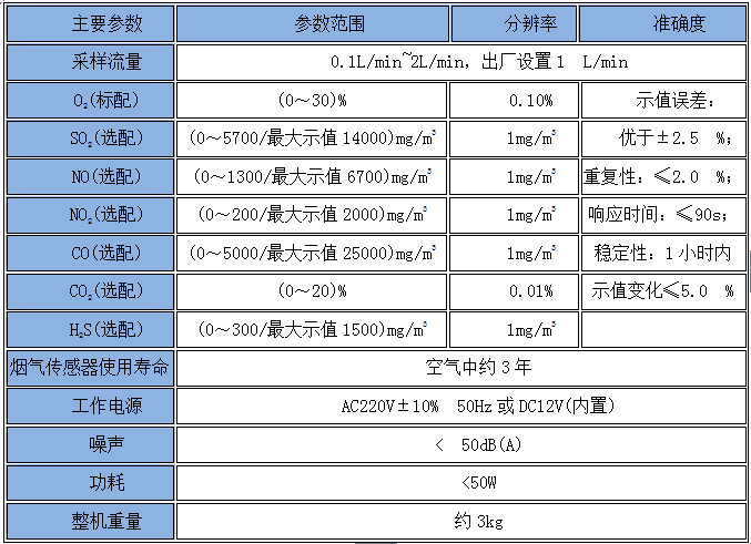 四、青島凱躍GH-62型鍋爐煙氣測試儀技術(shù)參數(shù)