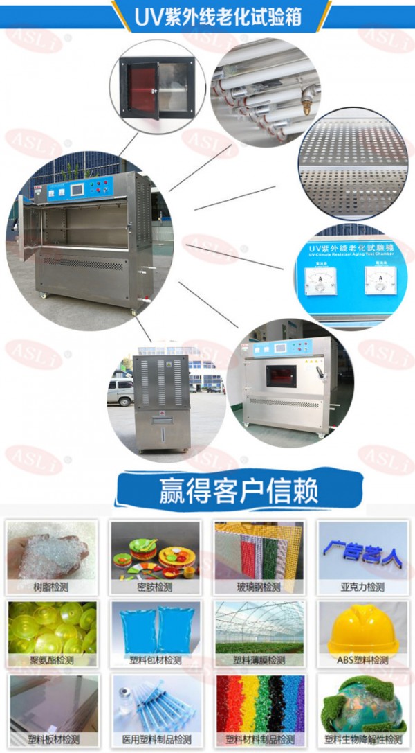 UV紫外線(xiàn)老化箱廠家又名氙燈紫外線(xiàn)試驗(yàn)箱(艾思荔)適用于評(píng)估儲(chǔ)存聚合材料和保護(hù)層等材料抗紫外輻照性能。主要應(yīng)用于光伏行業(yè),及太陽(yáng)能行業(yè)。用于測(cè)試,主要是單晶硅組件,地面用晶硅,地面用薄膜等一系列進(jìn)行紫外光加速耐候試驗(yàn),可以再現(xiàn)陽(yáng)光所產(chǎn)生的破壞。