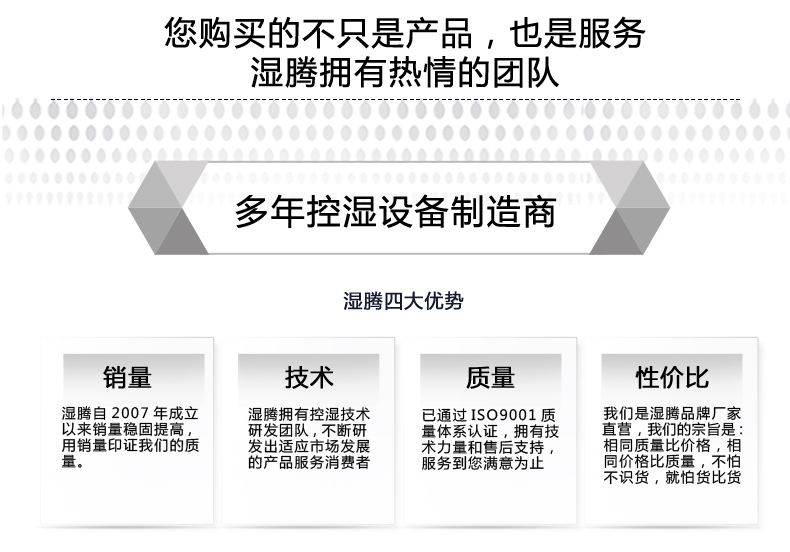濕騰主要為客戶提供專業(yè)的舒適家居環(huán)境系統(tǒng)解決方案,包括:五恒全空氣系統(tǒng)、五恒健康家居環(huán)能系統(tǒng)、三恒系統(tǒng)、酒窖恒溫恒濕、泳池(五集、三集、一集)、水舒適中央空調(diào)系統(tǒng)、中央除濕(加濕)系統(tǒng)、中央新風(fēng)系統(tǒng)、全屋凈水等系統(tǒng)解決方案,以及各類商用工裝產(chǎn)品系列,同時(shí)可根據(jù)客戶需求訂制各類非標(biāo)溫濕度控制設(shè)備。濕騰市場布局覆蓋全國,共計(jì)27家城市共享體驗(yàn)廳,108個(gè)銷售駐點(diǎn)。