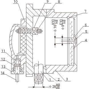 13、壓緊螺栓 14、引入導線(四芯電纜) 15、圓柱頭內六角螺釘 16、圓柱頭內六角螺釘