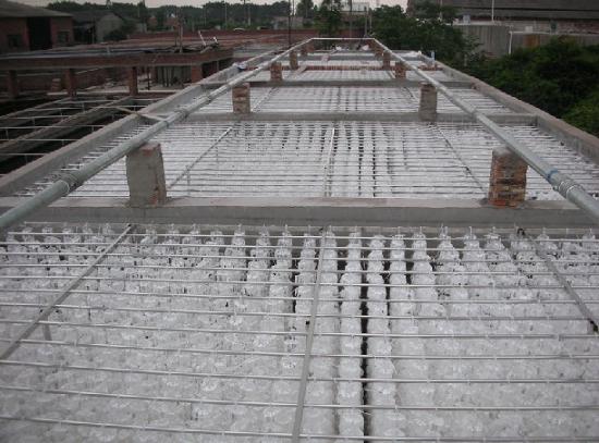 組合填料是在軟性填料和半軟性填料的基礎(chǔ)上發(fā)展而成的,它兼有兩者的優(yōu)點(diǎn)。其結(jié)構(gòu)是將塑料圓片壓扣改成雙圈大塑料環(huán),將醛化纖維或滌綸絲壓在環(huán)的環(huán)圈上,使纖維束均勻分布;內(nèi)圈是雪花狀塑料枝條,既能掛膜,又能有效切割氣泡,提高氧的轉(zhuǎn)移速率和利用率。使水氣生物膜得到充分交換,使水中的有機(jī)物得到處理。 用 途: 用于污水、廢水處理工程,配套于接觸氧化塔、氧化池氧化槽等設(shè)備,是一種生物接觸氧化法和厭氧發(fā)酵法處理廢水的生物載體。 性能特點(diǎn): 具有散熱性能高,阻力小,布水、布?xì)庑阅芎茫组L(zhǎng)膜,又有切割氣泡作用。具有散熱性能高,阻力小,布水、布?xì)庑阅芎茫组L(zhǎng)膜,又有切割氣泡作用。