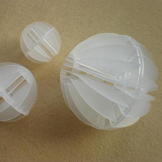 采用聚丙烯塑料制成球狀,在球中部沿整個周長有一道加固環(huán),環(huán)的上下各有十二片球瓣,沿中心軸呈放射形布置,適用于二氯化碳脫氣塔,接觸反應(yīng)塔等裝置。