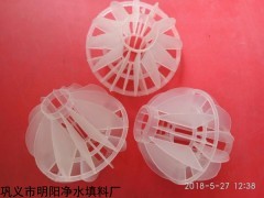 采用聚丙烯塑料制成球狀,在球中部沿整個(gè)周長(zhǎng)有一道加固環(huán),環(huán)的上下各有十二片球瓣,沿中心軸呈放射形布置,適用于二氯化碳脫氣塔,接觸反應(yīng)塔等裝置。