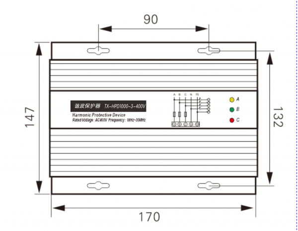 安裝尺寸:90×132(長×寬)并聯(lián)于線路中、懸掛式/導(dǎo)軌安裝