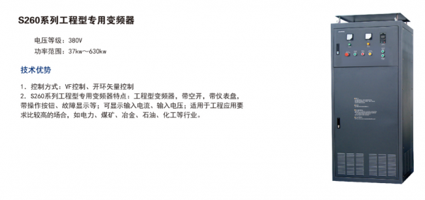 深川S260系列工程型專用變頻器適用于工程應(yīng)用要求比較高的場合,如電力、煤礦、冶金、石油、化工等行業(yè)。