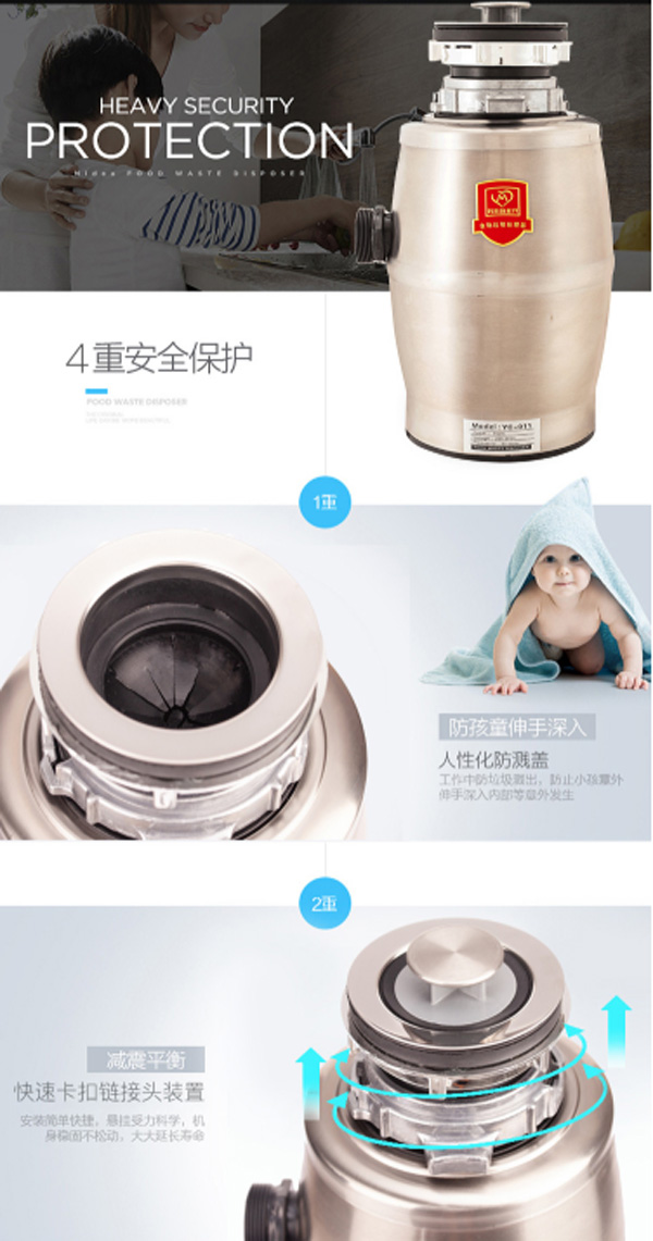 廚余垃圾處理器從根本顛覆以前拋扔垃圾處理方式,有效徹底解決廚余垃圾煩惱,被稱為:“廚房的第二次革命”。據(jù)實(shí)驗(yàn)證明,廚余垃圾處理器可以消滅禽獸小骨、魚骨、蛋殼、菜葉、果皮、咖啡渣、殘羹剩飯等食品垃圾,特別是在春、夏、秋三個(gè)季節(jié),食物垃圾處理器可以有效地避免食物垃圾因儲(chǔ)存而滋生細(xì)菌、蛀蟲和異味,從而優(yōu)化了家居環(huán)境,對于人體的健康和環(huán)境的保護(hù)都有很大的好處。從環(huán)保的角度來言,食物垃圾處理器是減少家庭垃圾好幫手,還可以減少需要填埋的垃圾量。據(jù)統(tǒng)計(jì),減少的幅度可以達(dá)到75%。