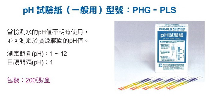 日本共立(KYORITSU)pH Test Paper PH試驗紙(一般用) pH試驗紙(一般用) 型號:PHG-PLS當(dāng)檢測水的pH值不明時使用,并可測定于廣泛范圍的pH