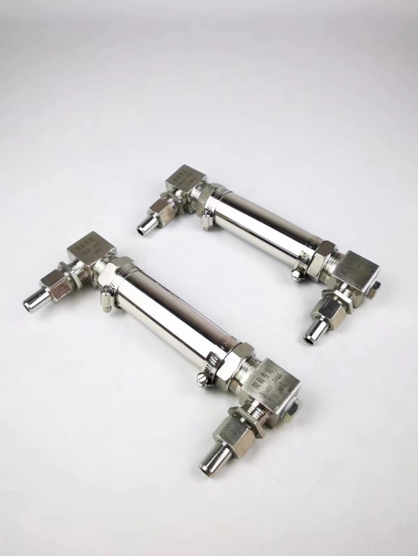 液位計兩端的針型閥不僅起截止閥的作用,其內(nèi)部的鋼球具有逆止閥的功能,當液位計發(fā)生意外破損泄漏時,鋼球可在介質(zhì)壓力作用下自動關(guān)閉液體通道,防止液體大量外流起到安全保護作用。液位計改變零件的材料或增加一些附屬部件可達到防腐、保溫、防霜、照明等功能。