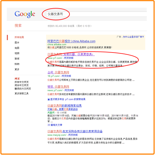 儀器交易網(wǎng)與Google、Baidu等搜索引擎強強聯(lián)合,不僅為儀器儀表企業(yè)提供行業(yè)門戶平臺宣傳 推廣,同時也為儀器儀表企業(yè)爭取搜索引擎增值服務(wù),提供Google右側(cè)廣告包年服務(wù)、Google左側(cè)優(yōu) 化、Baidu左側(cè)優(yōu)化!壟斷Google、Baidu搜索頁面,沖擊采購者眼球!