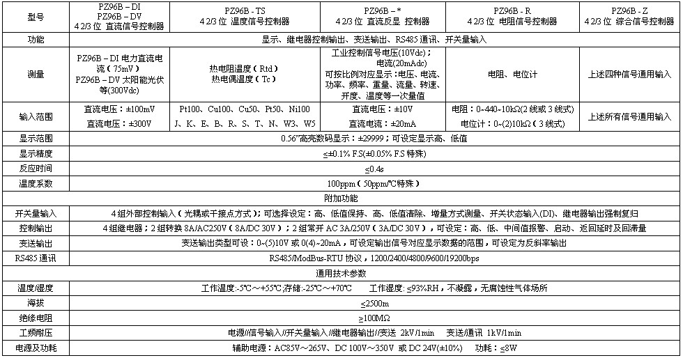 PZ96B系列數(shù)顯控制儀表是一種用于電力及工業(yè)自動(dòng)化測量的智能儀表,集多種測量功能于一身,一表多用,可測量直流電流、直流電壓、各種類型熱電偶、熱電阻、電阻傳感器,帶DC24V電源輸出可給外部兩線式變送器直接供電。儀表帶有多種可選功能:RS485接口、模擬量輸出、開關(guān)量輸入、繼電器報(bào)警輸出等。廣泛應(yīng)用于電力直流屏監(jiān)測,工業(yè)自動(dòng)化控制領(lǐng)域的壓力、溫度、位移等的測量和控制。