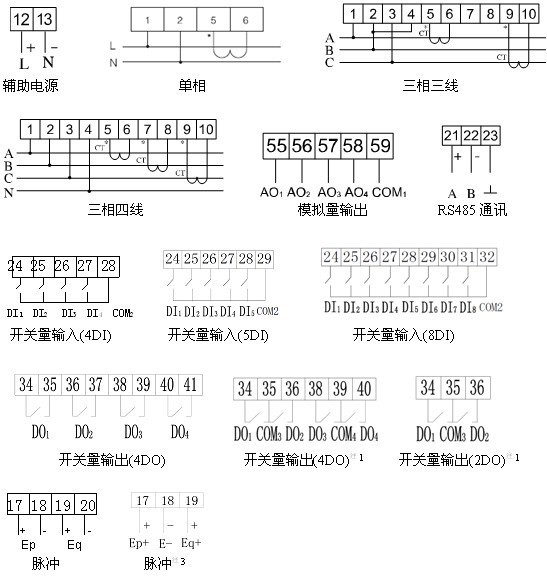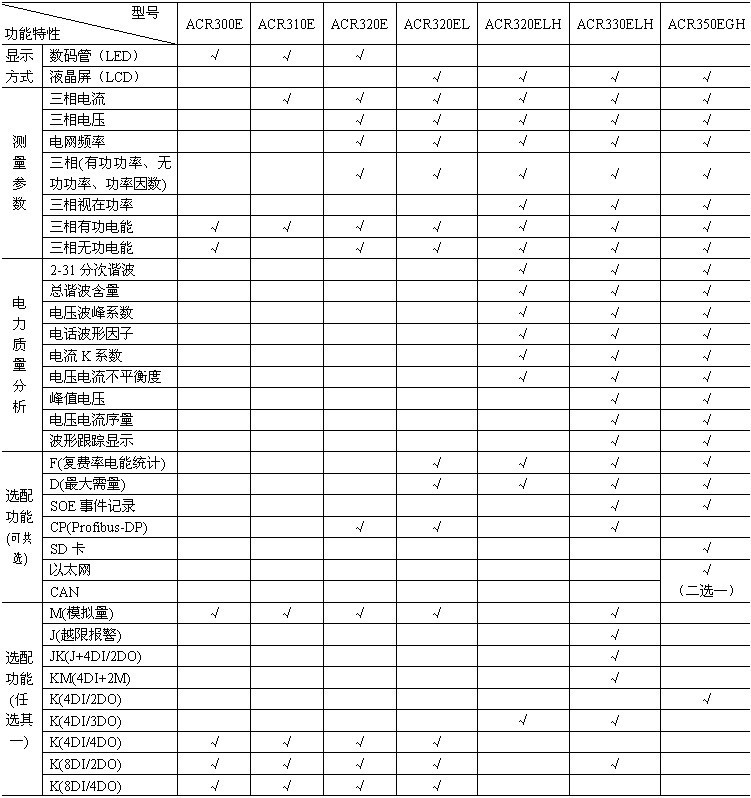 1、ACR300E、ACR310E、ACR320E(L)在選配K(4DI/4DO、8DI/4DO)功能時(shí)無脈沖信號(hào)輸出端口;