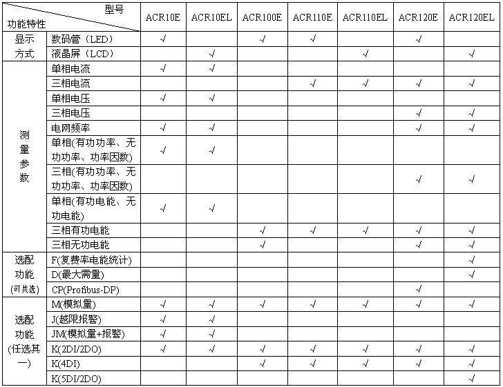 2、ACR10E(L)在選配K(2DI/2DO)功能時(shí)無脈沖信號(hào)輸出端口;