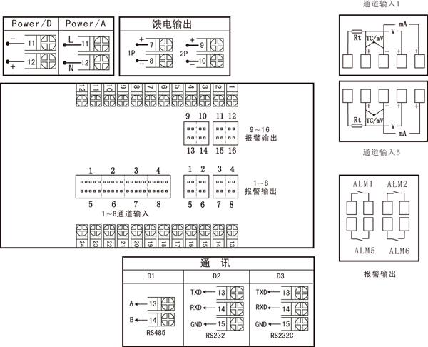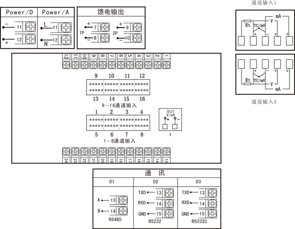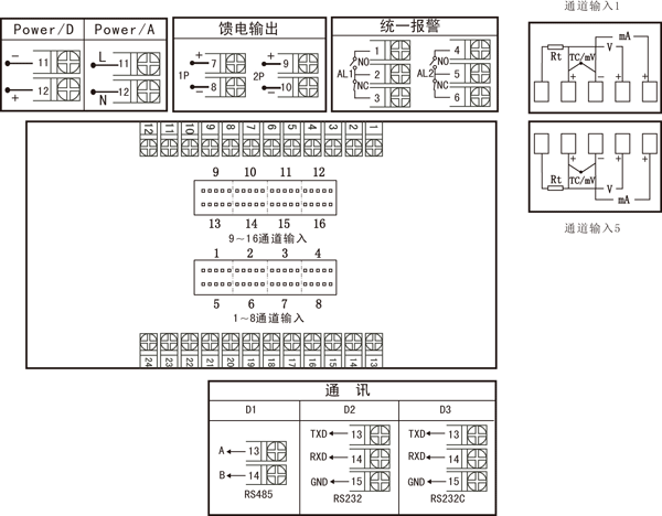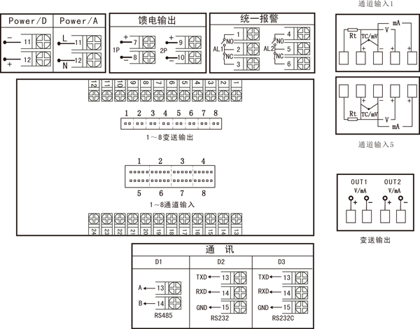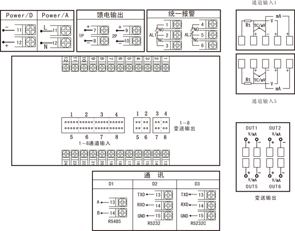 | 注:統(tǒng)一變送輸出的接線端子在1號輸出端子上。 | ||||||||||||||||||||||||||||||||||||||||||||||