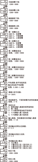 | 注:以上參數(shù)為儀表全部參數(shù),如果不是全功能儀表,則未選功能所對應(yīng)的參數(shù)將不予顯示。 | ||||||||||||||||||||||||||||||||||||||||||||||