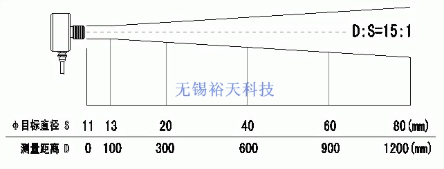 MTX50B的光學(xué)分辨率是15:1,相應(yīng)的光斑尺寸可以通過距離和光斑尺寸的比率為15:1近似計(jì)算。