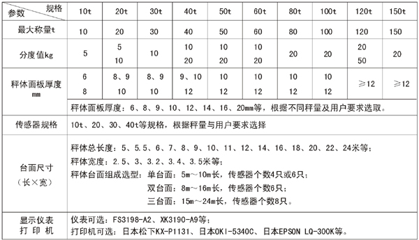 SCS電子汽車衡的選型參數(shù)表