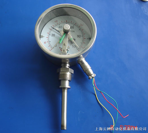 電接點(diǎn)雙金屬溫度計(jì)是利用溫度變化時(shí)帶動(dòng)觸點(diǎn)變化,當(dāng)其與上下限觸點(diǎn)接觸或斷開的同時(shí),使電路中的繼電器動(dòng)作,從而自動(dòng)控制和報(bào)警。