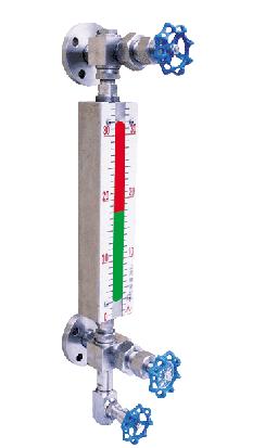 兩端采用三通法蘭連接,無安全裝置。由于口徑20mm,可測量較粘稠介質的液位,測量范圍與顯示高度同等 |
