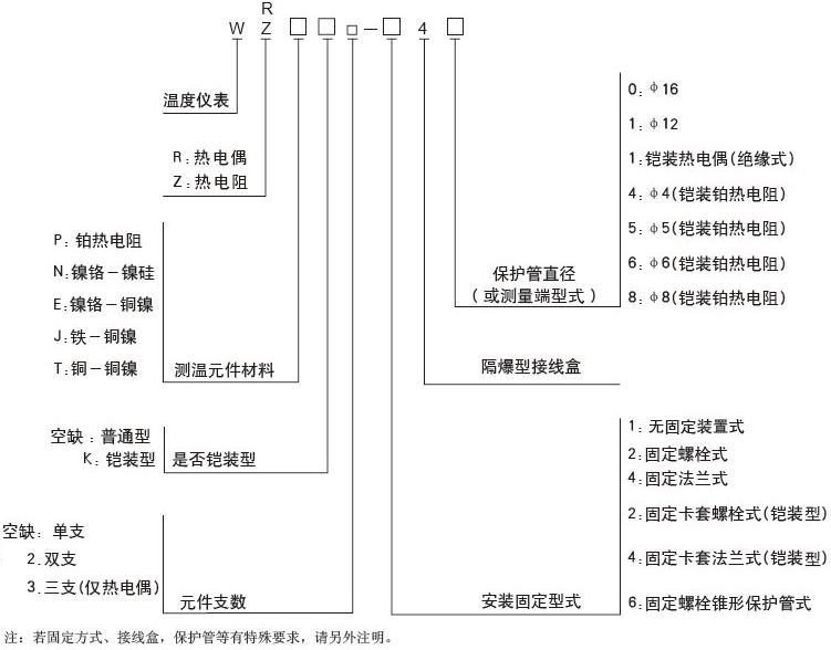 隔爆熱電阻、隔爆熱電偶型號命名