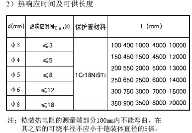 WZPK鎧裝鉑熱電阻主要技術(shù)指標(biāo)