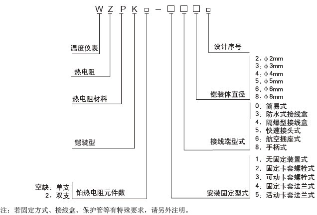 WZPK鎧裝鉑熱電阻型號(hào)命名