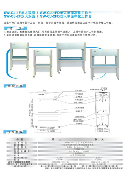 SW-CJ-2F雙人雙面/SW-CJ-2FD雙人單面凈化工作臺(tái)