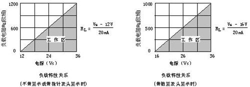 4. 供電電壓:12~36VDC,額定電壓24VDC;帶數(shù)顯表頭時(shí),電源電壓為16~36VDC;