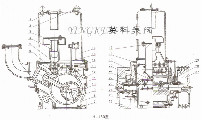 五、H-150滑閥式真空泵結(jié)構(gòu)圖: