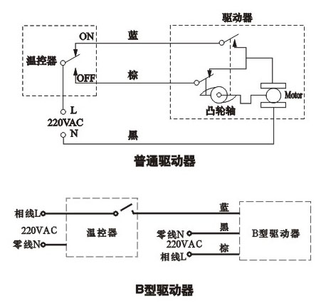 5、B型驅(qū)動器內(nèi)置繼電器,一條線控制,可配三速開關,可實現(xiàn)多閥并聯(lián)。