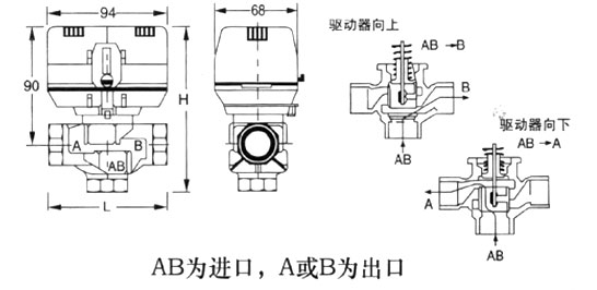 2、二通電動閥介質(zhì)流向可從A至B,也可從B至A:三通電動閥介質(zhì)流向從AB至A或B。