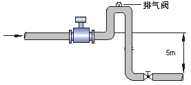 若管道落差超過(guò)5m時(shí),在傳感器的下游安裝排氣閥;
