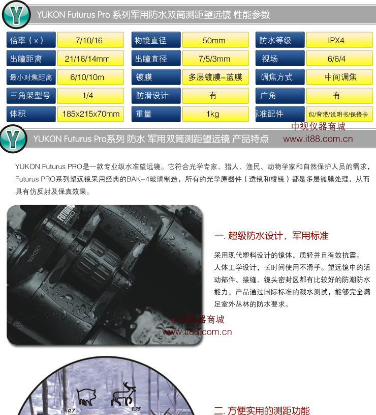 型號:育空河PRO 10x50WA雙筒望遠(yuǎn)鏡