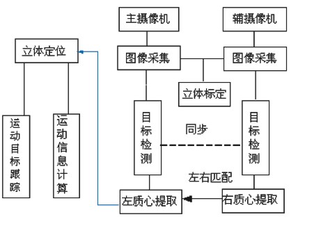 如上圖所示,固定相機(jī)完成攝像機(jī)的標(biāo)定。針對(duì)其視場(chǎng)內(nèi)的運(yùn)動(dòng)目標(biāo)實(shí)現(xiàn)實(shí)時(shí)檢測(cè)與跟蹤,確定運(yùn)動(dòng)目標(biāo)的質(zhì)心位置,并根據(jù)標(biāo)定結(jié)果對(duì)運(yùn)動(dòng)目標(biāo)的坐標(biāo)位置進(jìn)行測(cè)量等內(nèi)容。