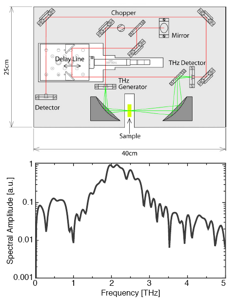TeraSys 4000 太赫茲系統(tǒng)搭建和頻譜響應,如下圖: