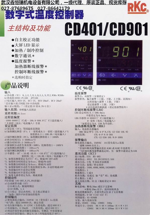 武漢鑫恒瑞機電設(shè)備有限公司華中總代理日本理化RKC溫控器,CH402溫控器,CD901溫控器庫存現(xiàn)貨,供應(yīng),備客戶急用之所需。本公司可供客戶之所需,快遞送貨上門,若有需要歡迎您來電垂詢!