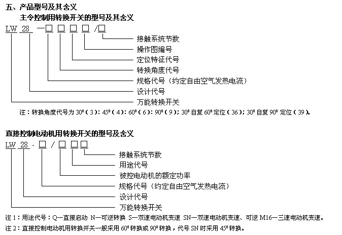 (1)定位型轉(zhuǎn)換開關(guān)有1~12節(jié)(63A及以上的開關(guān)僅有8節(jié));