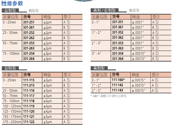 分辨率*: 0.001mm 或 .00005"/0.001mm